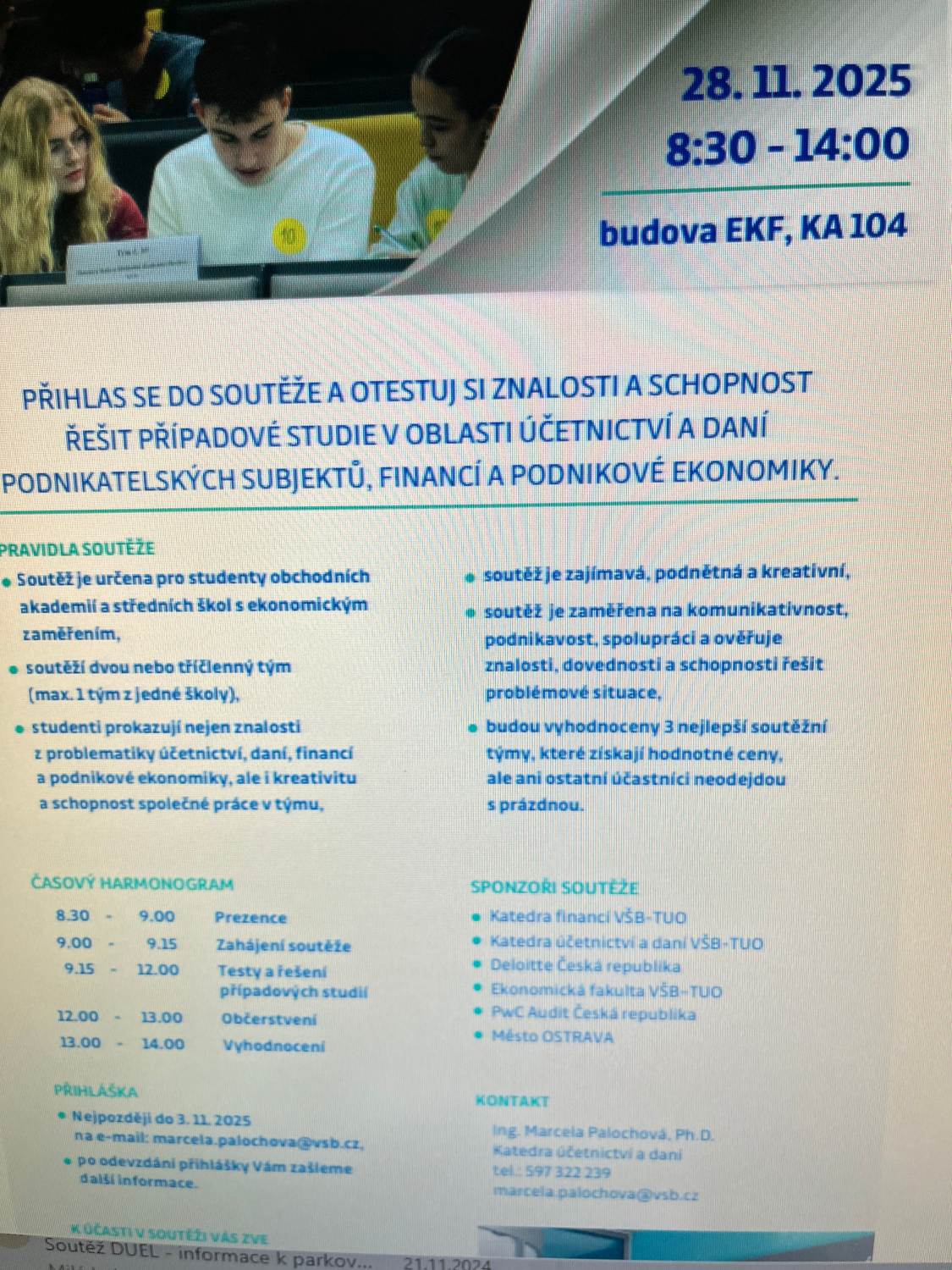 zúčastnili 11. ročníku soutěže DUEL na Ekonomické fakultě VŠB, kterou pořádaly pod patronací děkana společně Katedra účetnictví a daní, financí a podnikohospodářská.