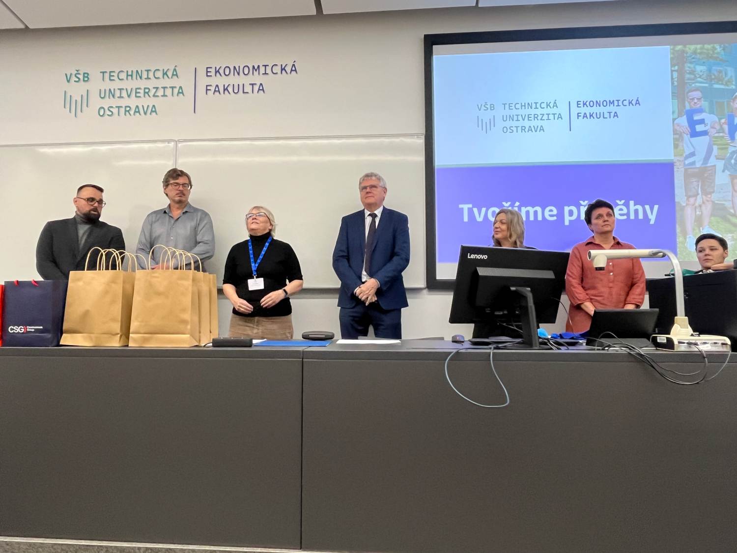 i firmy Deloitte, PwCAudit ČR a Město Ostrava. Mezi žáky zavítal i pan děkan doc. Spáčil