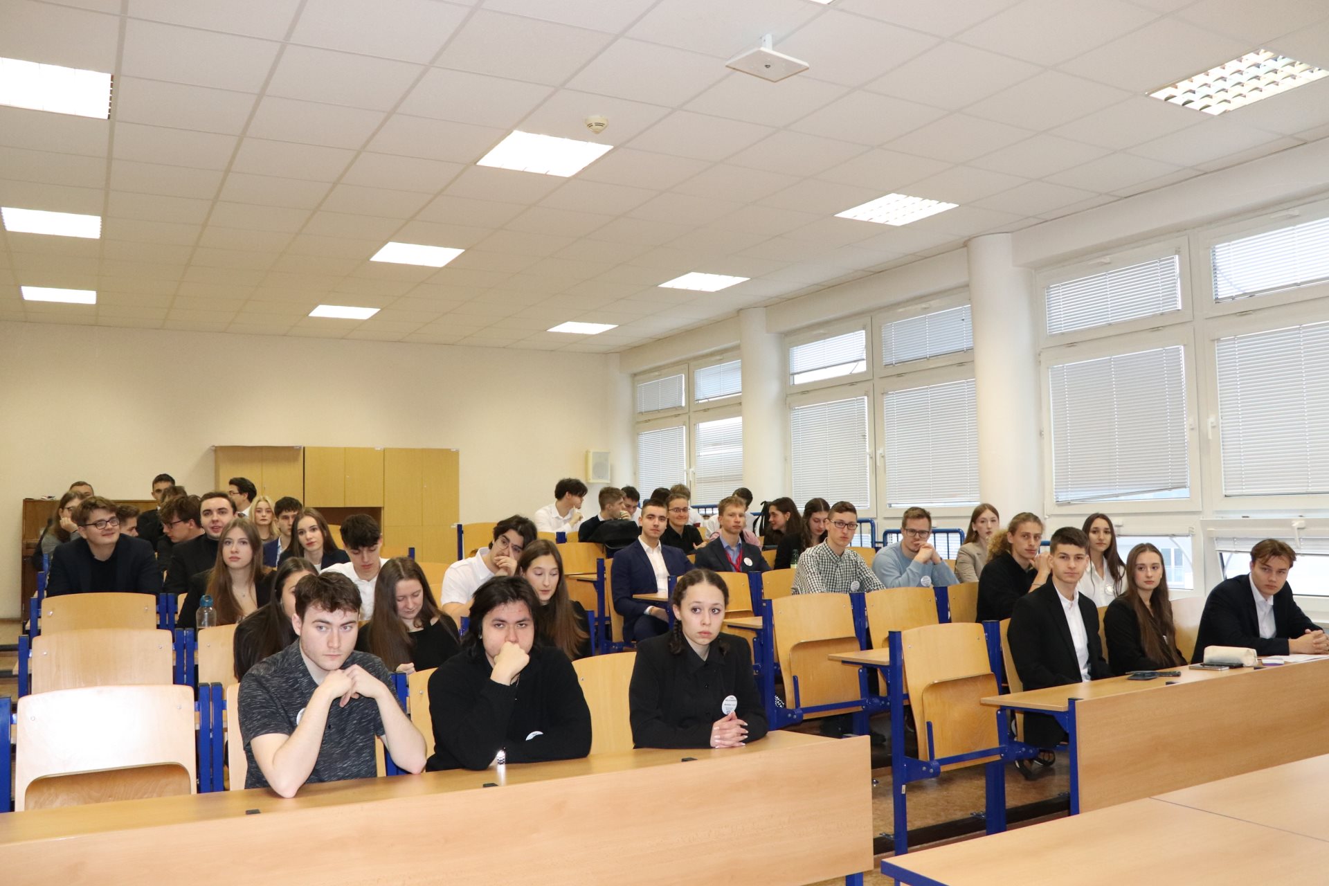 Druhý soutěžní den pokračoval na OA a SZŠ Blansko vědomostním testem a následným ústním projevem. Právě v něm náš tým zazářil nejvýrazněji. Zvolili formu odborné panelové diskuse – Michal vystoupil jako ministr financí, Tobiáš jako předseda Národní rozpočtové rady a celé vystoupení vedla zkušeně moderátorka Martina. Téma státního rozpočtu a zadlužení uchopili s nadhledem, argumentační jistotou a profesionalitou, která překonala všechny ostatní týmy s výrazným náskokem.