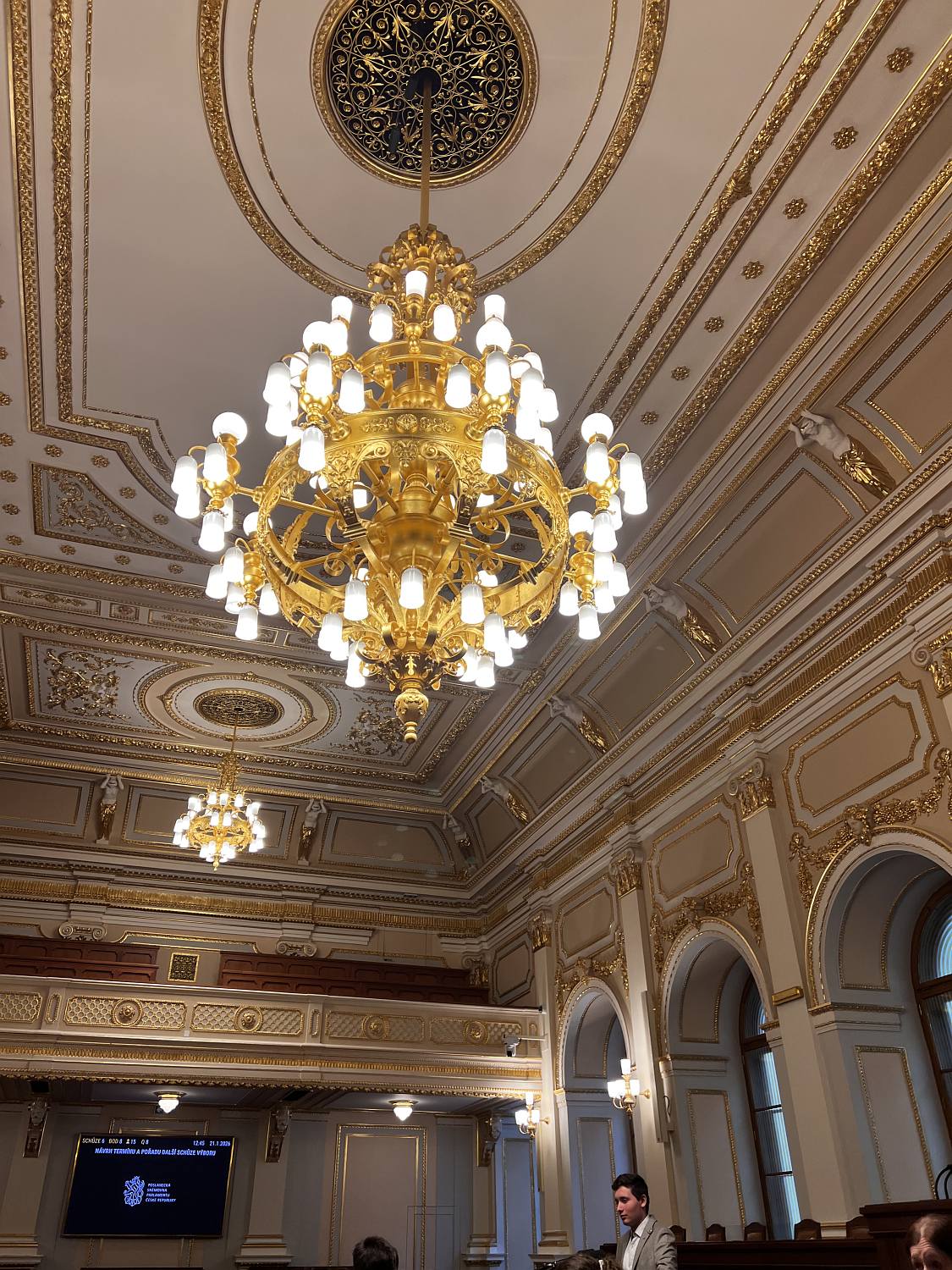 Všechna témata byla zajímavá a přínosná a budeme rádi, pokud se v příštím roce naše škola zúčastní dalších vypsaných akcí. Po skončení semináře jsme měli možnost prohlídky samotné poslanecké sněmovny včetně jednacího sálu, sálů výborů a nahlédnutí na některá místa, kde mají kanceláře zvolené strany a hnutí ve volbách loňského roku, konkrétně jsme viděli SPD, Piráty, a nakonec Starosty a nezávislé. Velkým překvapením byl i small talk s předsedou sněmovny Tomiem Okamurou za SPD nebo Pavlem Bartoňem za ANO – místostarosta města Vsetín.