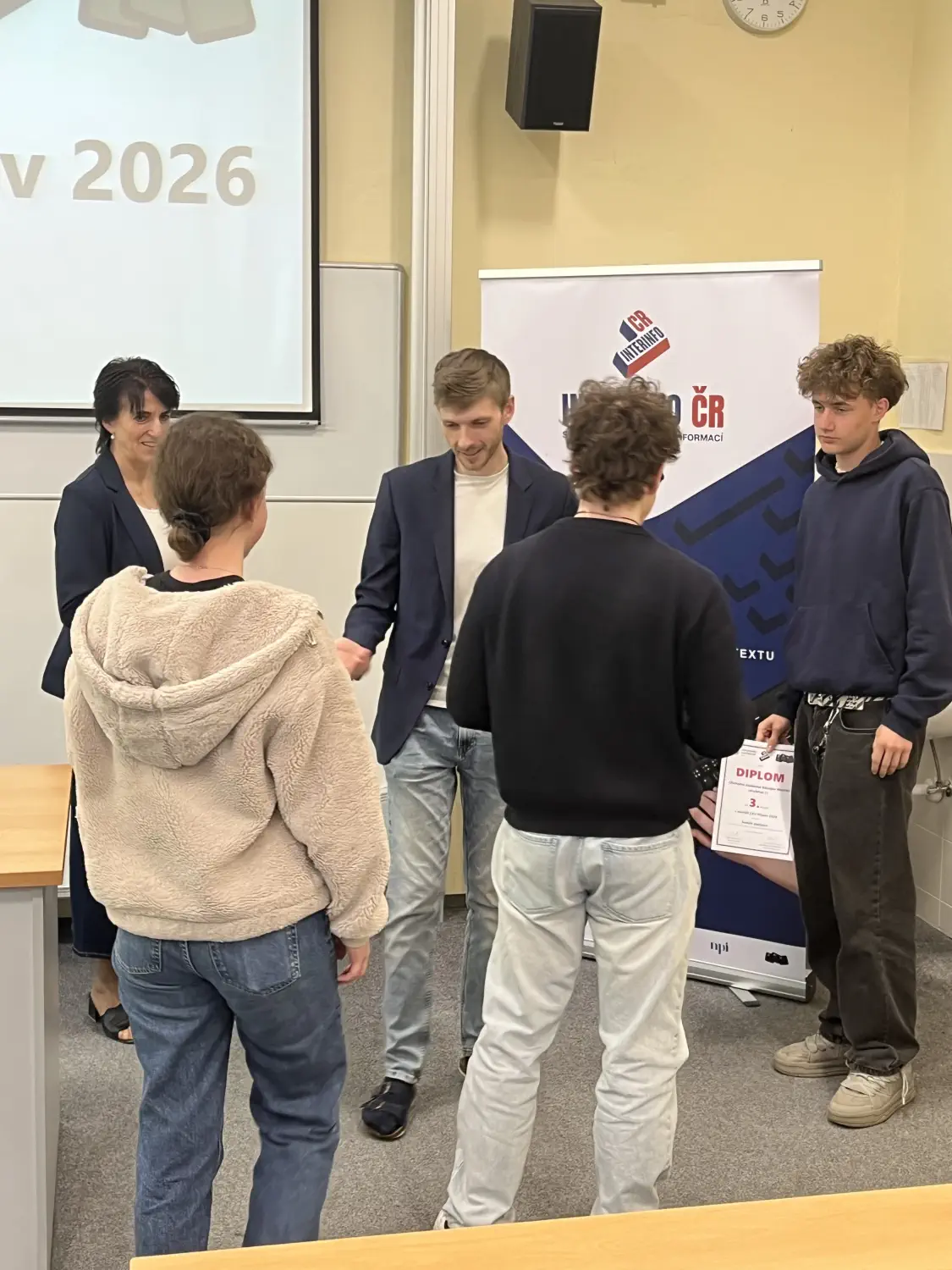Dne 22. dubna 2026 se naši žáci Klára Pařenicová (2. C), Jakub Pospíchal (3. B), Josef Burdík (3. D), David Silný (3. A), Robin Matyska a Antonín Směták (oba 2. D) zúčastnili 23. ročníku soutěže v 10min opisech na Obchodní akademii v Přerově.